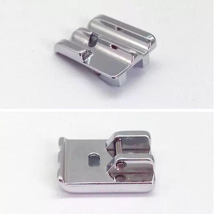این پایه جهت دوخت مغزی کاربرد دارد. شما تنها باید نوار مغزی را در جهت مورد نظر قرار داده و توسط این پایهها بدوزید. این پایهها به شما کمک میکند تا بدون اینکه پارچه در زیر پایه لیز بخورد و منحرف شود، تا بتوانید نوار مغزی را در قسمت مورد نظر به طور مناسب بدوزید. مناسب چرخ خیاطی خانگی برند های زانومه، برادر ، مارشال و کاچیران .