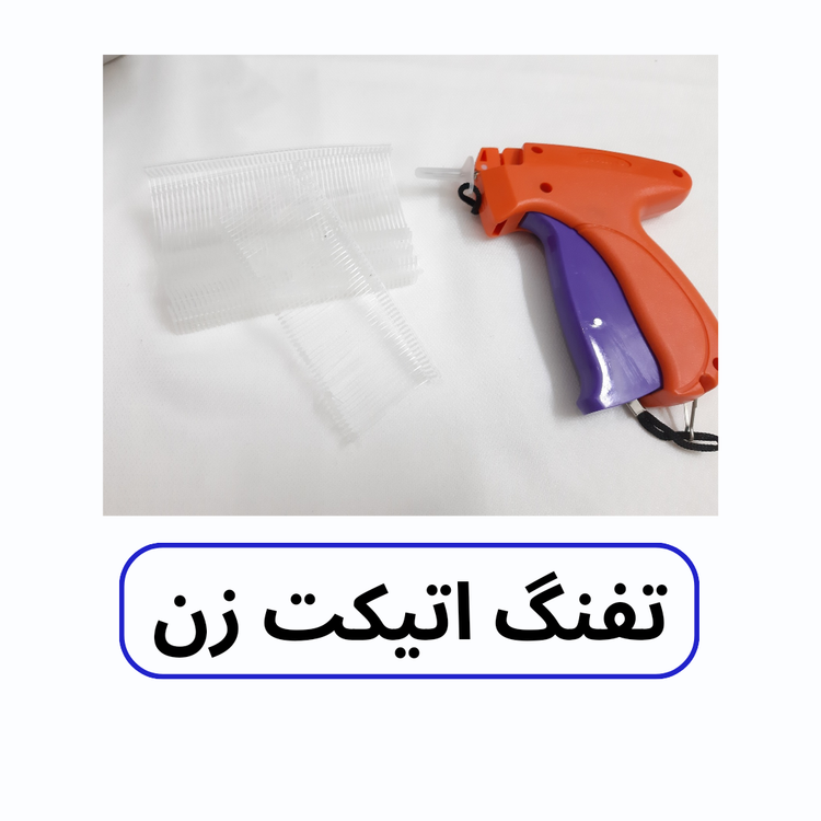 تفنگ اتیکت زن کار تگ زدن و متصل کردن را انجام میدهد و برای پرده و لباس کارایی دارد. هنگامی که میخواهیم اتیکتهای لباس را به آن وصل کنیم باید از این دستگاه استفاده کنیم.